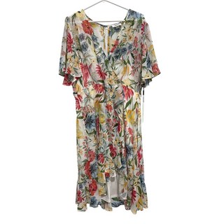 켈빈클라인 플로럴 페이크 랩 쉬폰 드레스 여성 14 플러터 슬리브 하이 로우 4965006