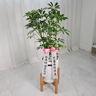 앤드플라워 택배발송 공기정화식물 실내 개업화분 중형 화분세트 + 우드스탠드 + 리본글씨 + 식물가이드 금전수 몬스테라 승진 집들이 축하 화분 배달 꽃배달, 01.금전수(47cm)우드스탠드, 1개