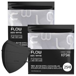 FLOW 슬림핏 KF94 새부리형 마스크 어린이 초등학생용 소형, 블랙, 2개, 25매입