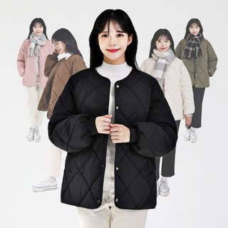 비욘 여성 오버핏 누빔 패딩점퍼/ 두꺼운 볼륨감 노카라 빅사이즈 데일리 점퍼/ 3color