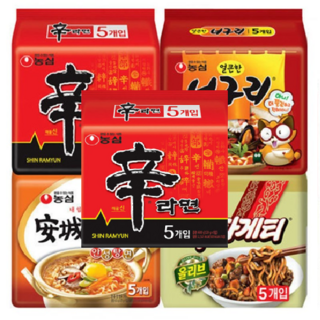 농심 신라면 120g x 5p + 안성탕면 125g x 5p + 얼큰 너구리 120g x 5p + 짜파게티 140g x 5p, 1세트