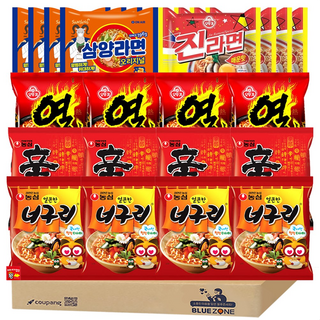 [안녕골목마켓] 봉지 라면 낱개 10종 20봉입 신라면2 진라면 매운2 짜파게티2 안성탕면2 삼양라면2 진짬뽕2 열라면2 스낵면2 오동통면2 틈새라면2 + 비빔장 소스, 1개