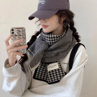 부드러운 짧은 헤링본 남자 여자 보풀없는 체크 니트 목도리