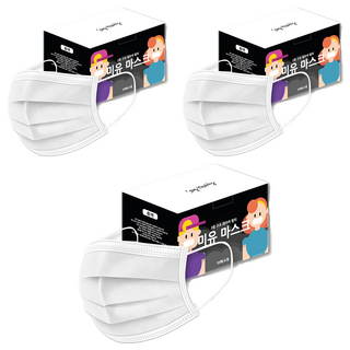 미유 3중필터 일회용 마스크 소형 어린이용, 50개입, 3개, 화이트