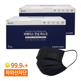 비에이스 국산 일회용 덴탈마스크, 100매, 1개, 대형 블랙