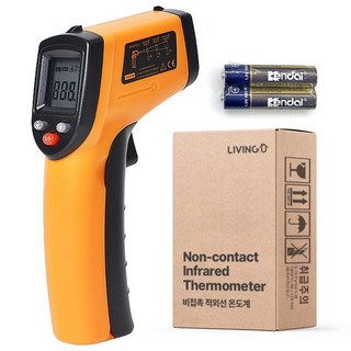 리빙유 비접촉식 온도계 -50~400도 디지털 적외선 온도 측정기 + 배터리, 1개, Black&Orange