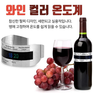 뭉구카 와인 컬러 온도계 스테인레스 H102 스틸 15초 정확한 온도 팔찌형태 음료수 맥주 하이볼 양주 보드카 음료 온도, 1개, 수량