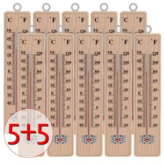 [10개 묶음] (원목 온도계 5P+5P) 실내 온도계 벽결이 막대 섭씨 화씨 온도계, 브라운, 10개