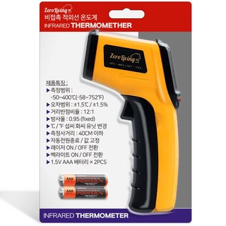 제로스큐 비접촉 온도계 -50~380도 건전지 포함, 혼합색상, 2개