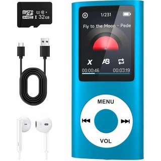 MP3플레이어 뮤직플레이어 엠피쓰리 블루투스 5.2가 장착된 MP3 플레이어 32GB 메모리 카드가 휴대용 음악 스테레오 이어폰 보이스 레코더/비디오/포토 뷰어/어린이용 전자책, Blue