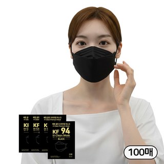 국내산 KF94 숨쉬기 편한 새부리형 컬러 황사 방역 대형 마스크, 100매, 1개, 블랙