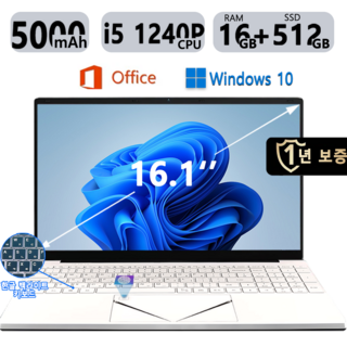 16.1인치 게이밍 노트북 16GB/32GB RAM 512GB SSD 독립 그래픽 카드 R5-7430U/I5-1240P 노트북 사무용 한글 백라이트 키보드 Windows 10, 흰색, i5-1240p, 16GB, WIN10
