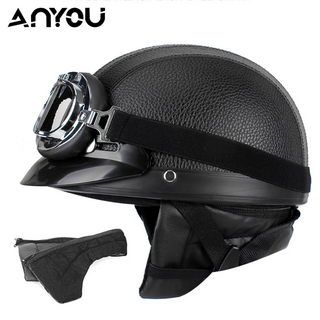 ANYOU 빈티지 고글 모자 안전모 전기자전거 모자 오토바이 헬멧 전동 킥보드 헬멧, 블랙