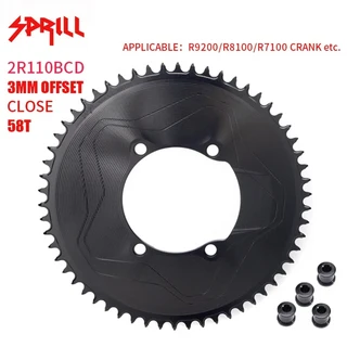 SPRILL 2R110 BCD 3mm 오프셋 (4 볼트 에어로) 라운드 좁은 와이드 체인링 9 12S 정사이즈 자전거 부품 지, 04 Black 3mm 58T