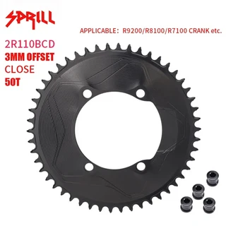 SPRILL 2R110 BCD 3mm 오프셋 (4 볼트 에어로) 라운드 좁은 와이드 체인링 9 12S 정사이즈 자전거 부품 지, 08 Black 3mm 50T