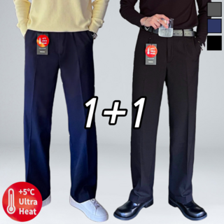 [1+1] 남자 겨울 링클프리 스판 기모 세미 와이드 슬랙스 팬츠 (6367-2)