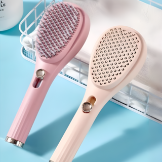 편리한 원터치 엉킴방지 매직 헤어브러시 세트, 1개, 핑크+베이지