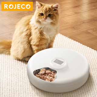 로제코 6구 자동급식기 강아지 고양이 건식 습식, 1개, 화이트, 1.2L