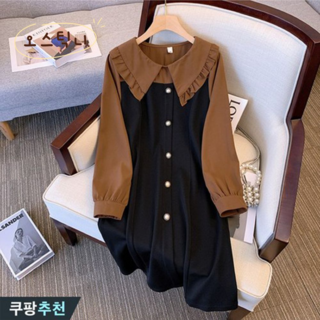 오스틱니 (매진 임박) 빅사이즈 여성 가을 긴팔 숄카라 클래식배색 긴팔 편한 추천 빅카라 루즈핏 간절기 미시 마담 큰언니 세련미 큰옷 여성의류 배색 데일리 롱원피스