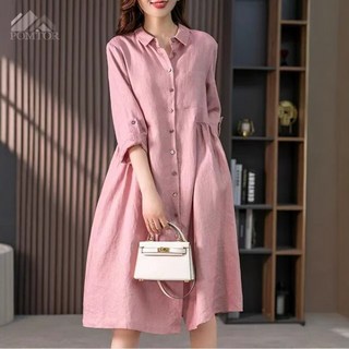 POMTOR 여성 가을 간절기 심플 루즈핏 면마 긴팔 원피스 셔츠원피스