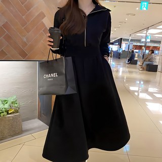 빅사이즈 여성 고급 라운드 긴팔 원피스 가을 원피스 루즈핏 플레어 롱스커트 하객 원피스