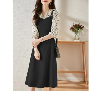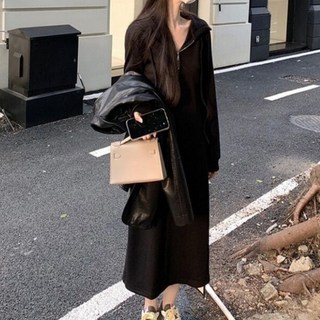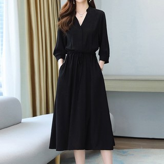 1+1 여성 햅번 날씬해보이는 맥시 원피스 봄 가을 편한 허리꼬임 심플 검정 a라인 스커트 매력 스판 루즈핏 패션 캐주얼 데일리 이어붙이다 플리츠 코디하기 좋은 이너 외출용 원피스