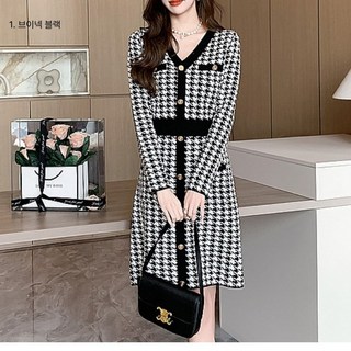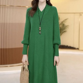 오스틱니[150kg까지 날씬해보이는] 원피스 여성 춘추 겨울 니트 무지 골지 브이넥 퍼프 이너 간절기 보송 스판 스웨터 단아한 매력 빅사이즈 캐주얼 패션 데일리 미디 a라인 스커트