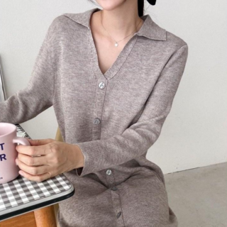 NewCare 여성 니트 롱 원피스 브이넥 카라 단추 뒷트임