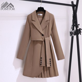 POMTOR 여성 봄가을 면접 고급 하객룩 정장 스커트 긴팔 원피스
