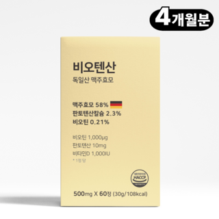 독일산 맥주효모 비오텐산 비오틴 판토텐산 비타민D 셀렌, 2개, 60정