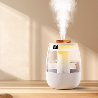 돌아라 4L 대용량 가습기 USB 듀얼분무 무드등 초음파 가습기, 흰색