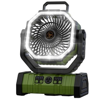 신맥스 F6 야외 캠핑용 무선 피크닉 선풍기 충전식 휴대용 20000mAh 초대용량 배터리 4단계 풍량 LED조명 무소음 탁상용 각도조절 차량용 자연재해 용품 행거식 에너지 절약, 그린