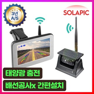 솔라픽 태양광 무선 후방카메라 화물차 특장차 캠핑카 트럭용, 디스플레이 + 후방카메라 1대