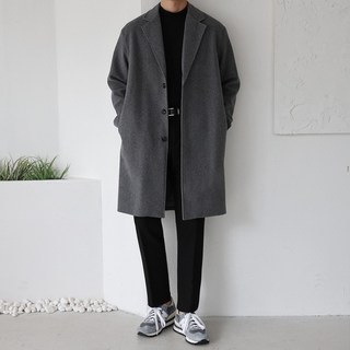 베이직바이블 남자 퀄리티 울 오버핏 싱글 롱코트