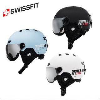 스위스핏 스키 헬멧 보드 스노우 바이저 고글일체형 아시안핏, 블루(고글일체형), 1개