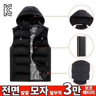 JM 발열패딩조끼 보조배터리포함 3단조절 열선 온열 골프 캠핑 낚시 여행 차박 산악