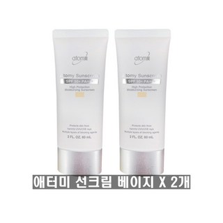 1+1 애터미 프리미엄 선크림 베이지 눈시림 백탁없는 톤업 썬크림, 2개, 60ml