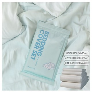 한잠 국산원단 국내생산 여행 호텔 숙소 한홈 일회용 침구커버세트 4종 세트