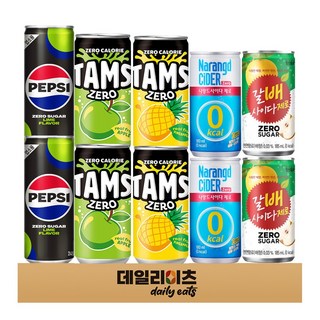 [데일리이츠] 제로 탄산 캔음료 소캔 5종류 10캔 (펩시제로라임 + 나랑드사이다제로 + 탐스제로 사과키위 + 탐스제로 파인애플 + 갈배사이다제로), 1박스, 210ml