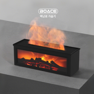 BOACE 미니 가습기 벽난로 무드등 무소음 초음파 가습기 집들이선물, 무광 블랙