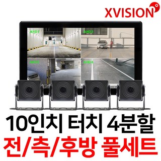10인치 4분할모니터 터치스크린 미니 후방카메라 측방 전방카메라 4채널 AHD풀세트 XV101P+K630i, 5M배선 1개 10M로 변경
