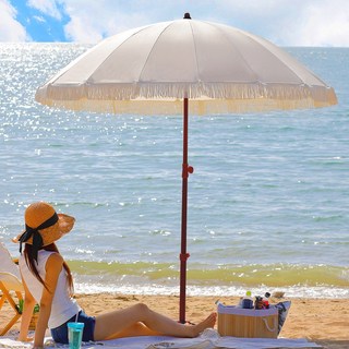 연필트리 감성 캠핑 비치 파라솔 2m + 받침대 + 파우치 세트, 크림베이지
