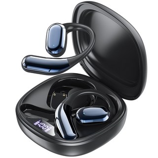 OMIIYA 귀걸이형 노이즈캔슬링 무선 블루투스 이어폰 오픈형 고음질, 블랙, E12