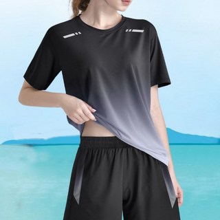 라틱 남자 여자 래쉬가드 상하의 세트 수영복 루즈핏 비치웨어, 블랙