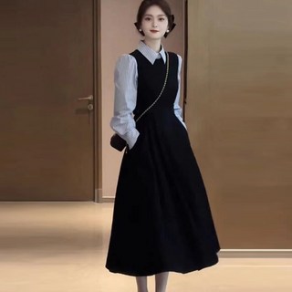 빅사이즈 여성 고급 라운드 긴팔 원피스 가을 원피스 루즈핏 플레어 롱스커트 하객 원피스