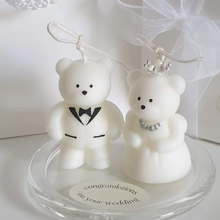 웨딩 베어 캔들 세트 (캔들 받침 선물포장 쇼핑백), 블랙베리&베이향