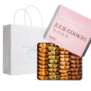 줄리쿠키 시즌1 + 선물용 쇼핑백 – 고급 백화점 버터 수제 쿠키 선물 세트 연말 크리스마스 새해 디저트 간식 기업 학교 회사 단체 결혼 웨딩 답례품, 1세트
