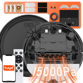 (2026최신버전) 물걸레겸용 로봇청소기 15000Pa 강력모터 6400mAh 전용 앱 원격제어 + 금지구역 설정 + 구역 집중 청소 + 자동 충전 1년 A/S 보증, 블랙