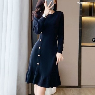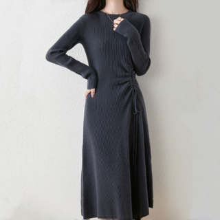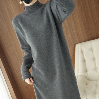 COSYEVNO 여성 니트 원피스 가을 라운드 빅사이즈 루즈핏 패션 트임 나른한 긴팔 미디스커트 lyjlyq-7
