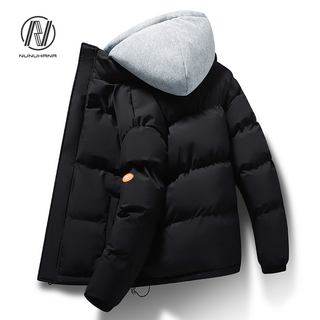 NUNUHANA 남성 페이크 투피스 후드 쇼트 패딩 점퍼 Z55
